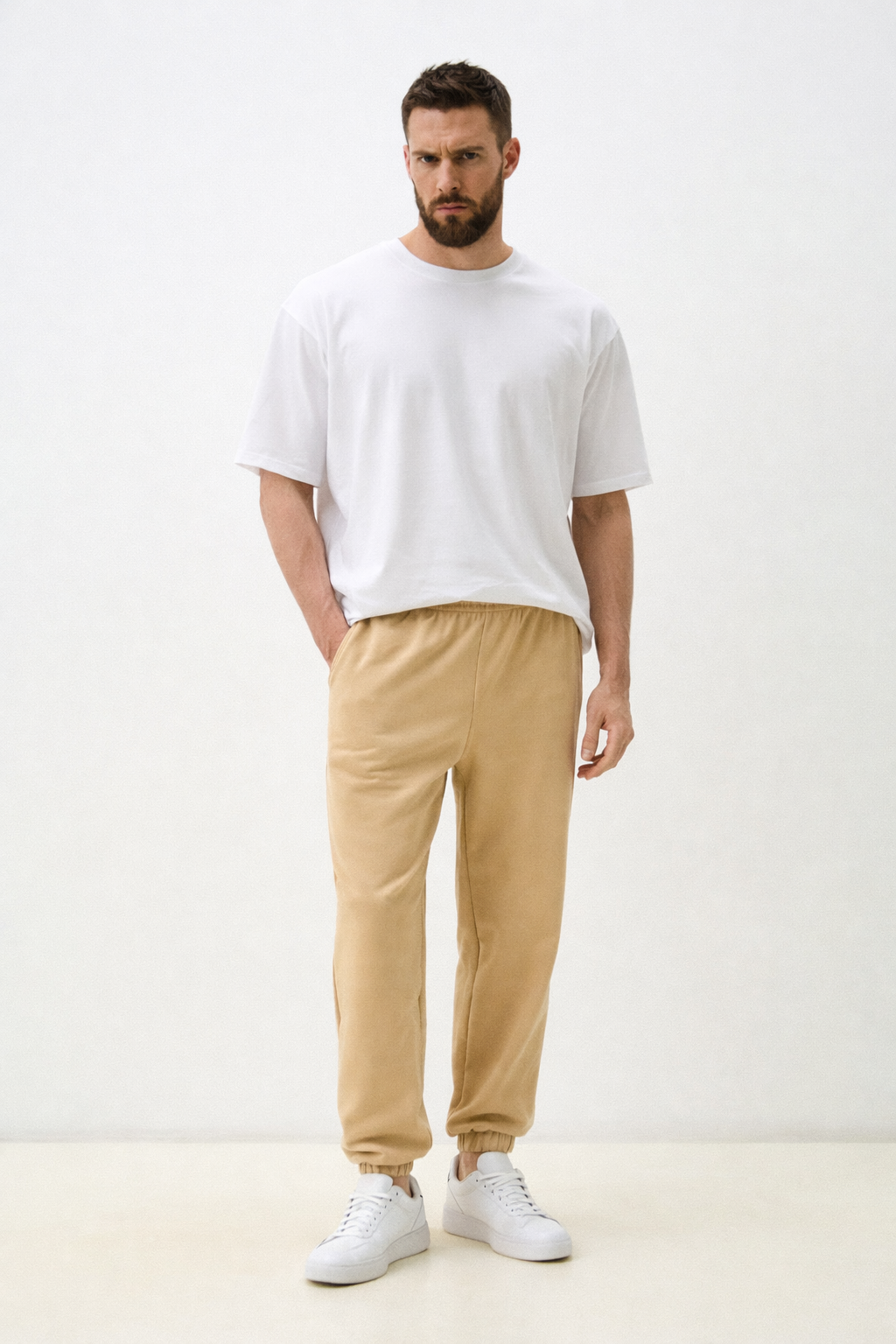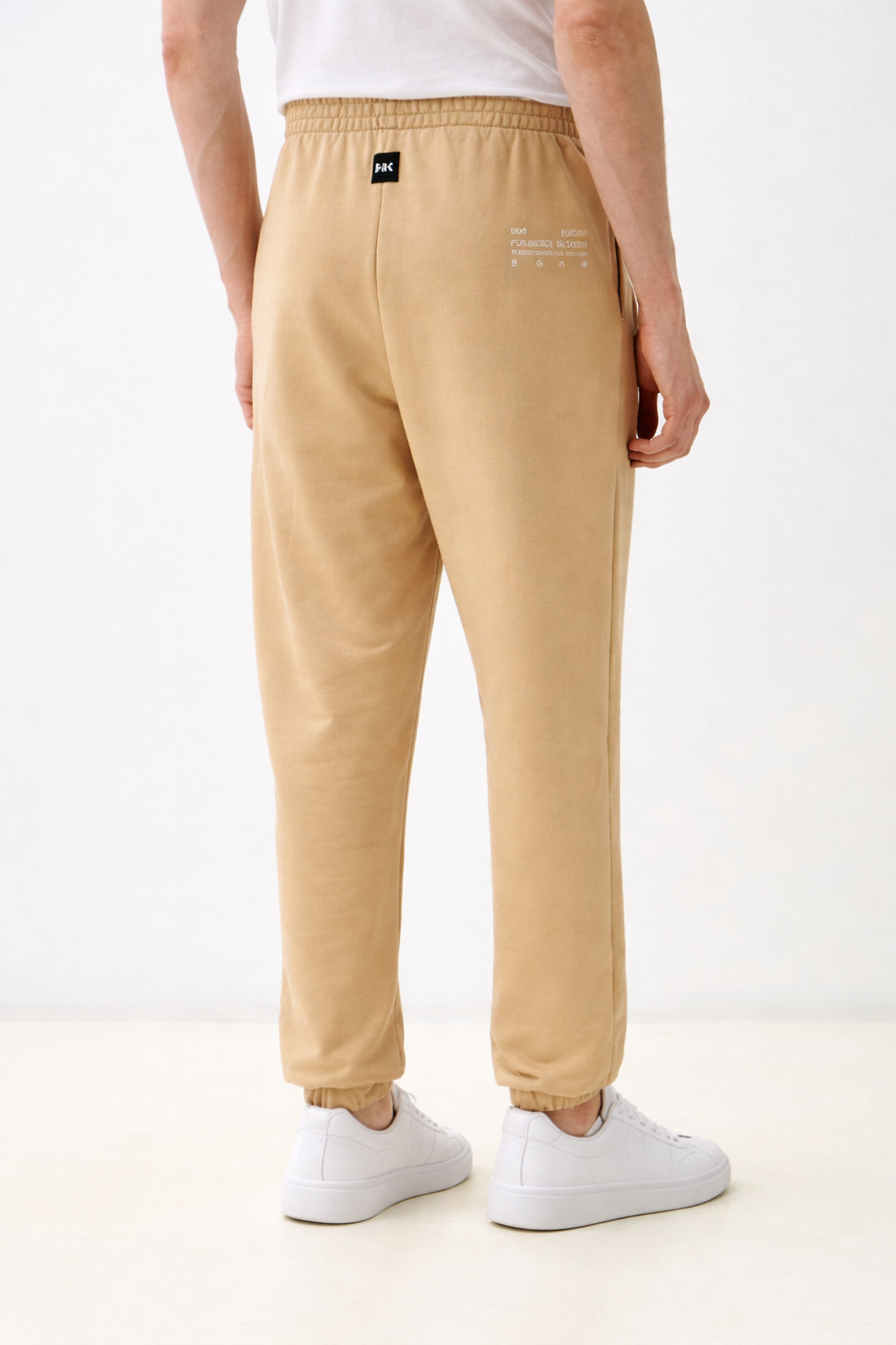 Джоггеры свободного кроя. Эластичная кулиска с широким шнурком на талии. Два втачных кармана. Эластичные присборенные манжеты на штанинах. Сзади - фирменная нашивка DNK, минималистичный принт на резинке . Джоггеры выполнены из плотного органического хлопка с петельчатым футером (3-х нитка), который обладает хорошей эластичностью, высокой воздухопроницаемостью и отличной способностью впитывать влагу.