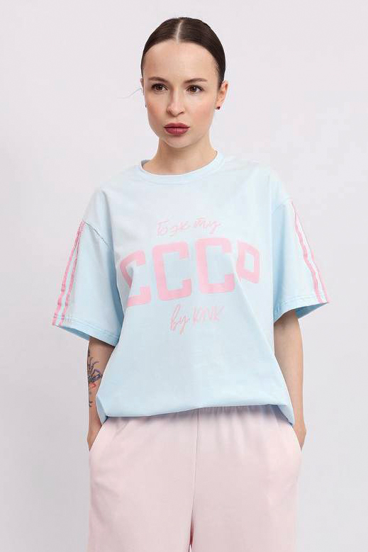 Футболка свободного кроя. Круглая горловина, опущенная линия плеч. На груди расположен принт СССР. Сзади фирменная нашивка DNK. Футболка изготовлена из дышащего органического хлопка, что обеспечивает комфорт при ношении.