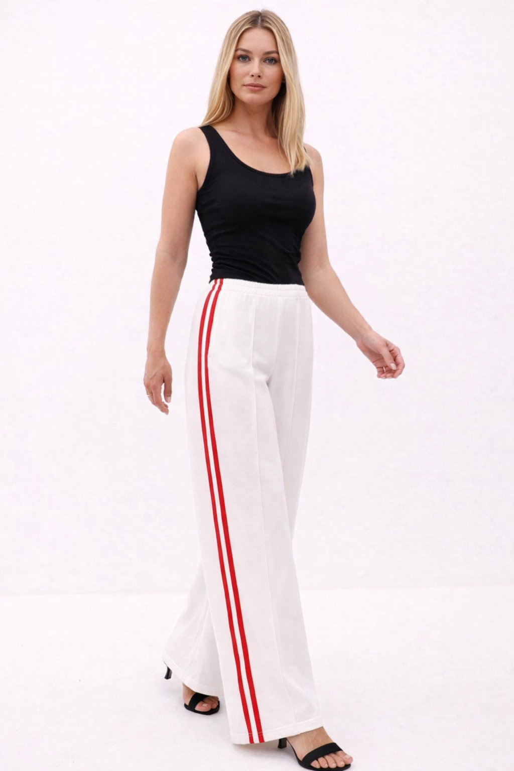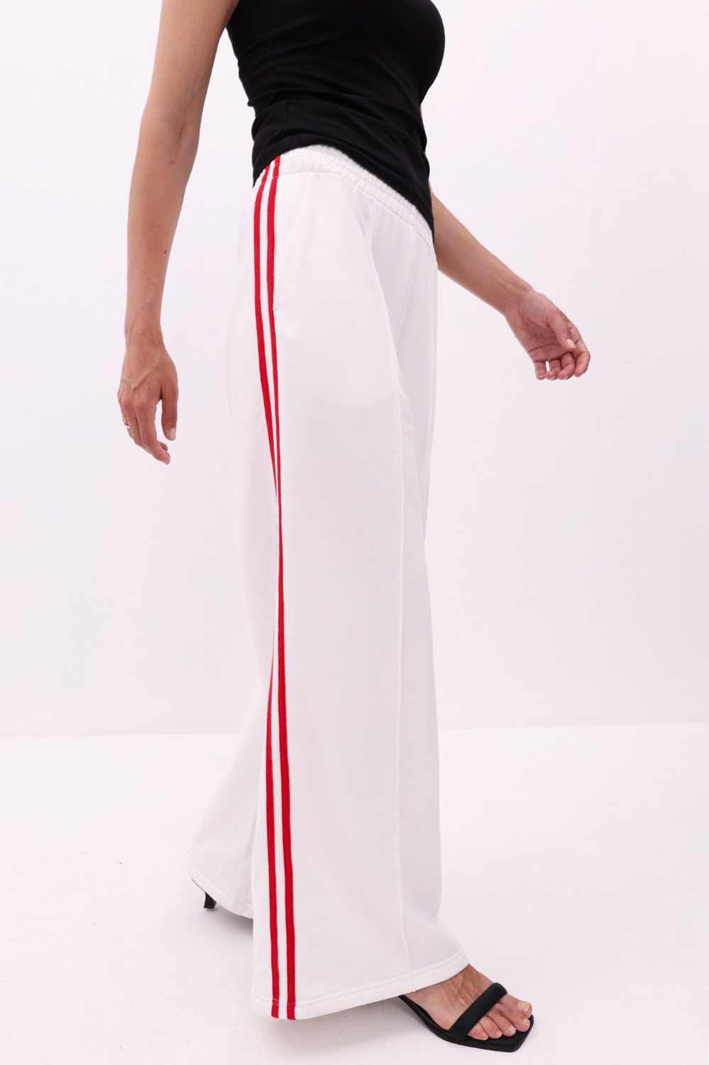 Брюки Палаццо с лампасами молочные