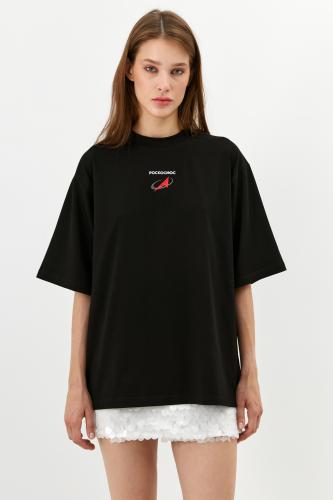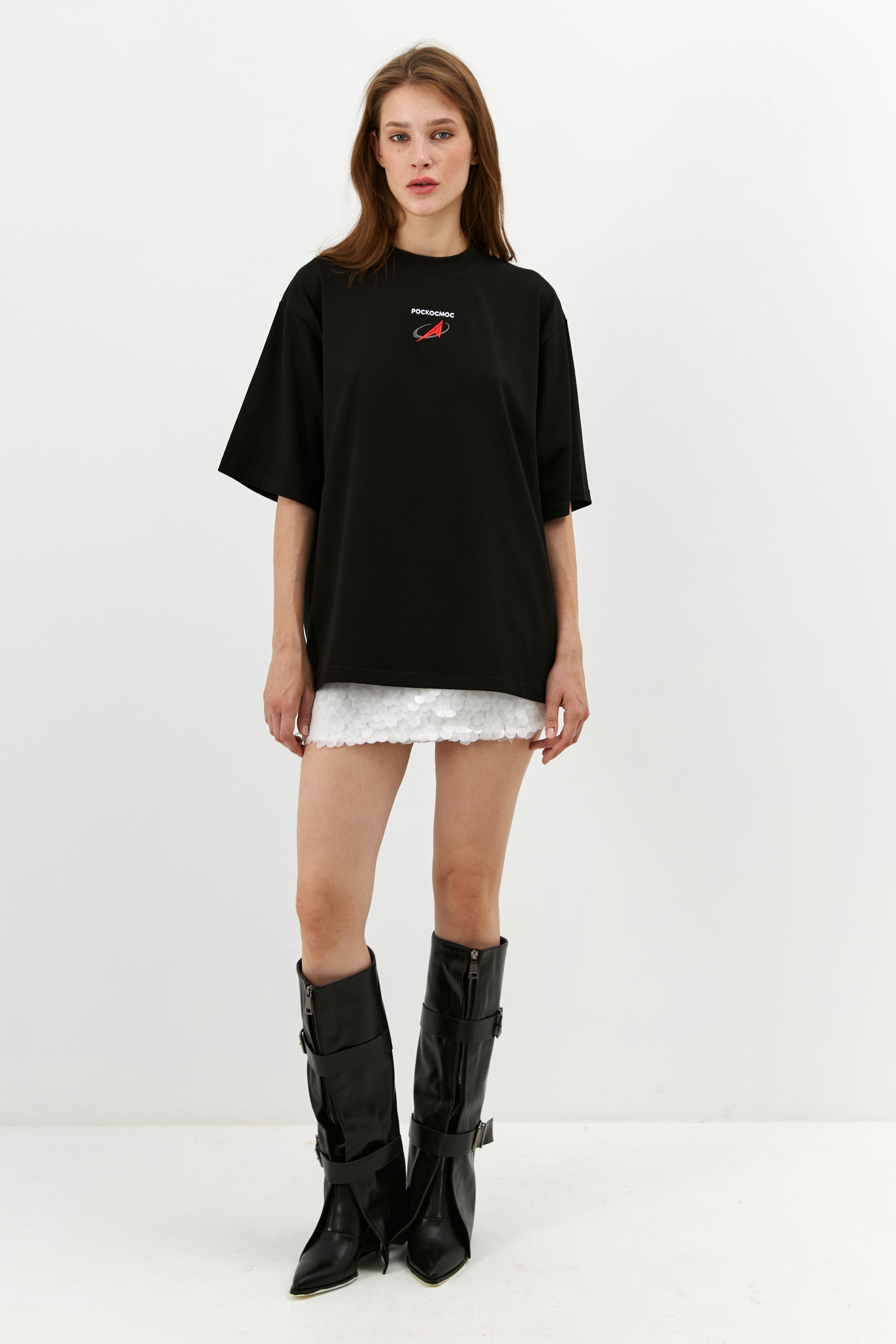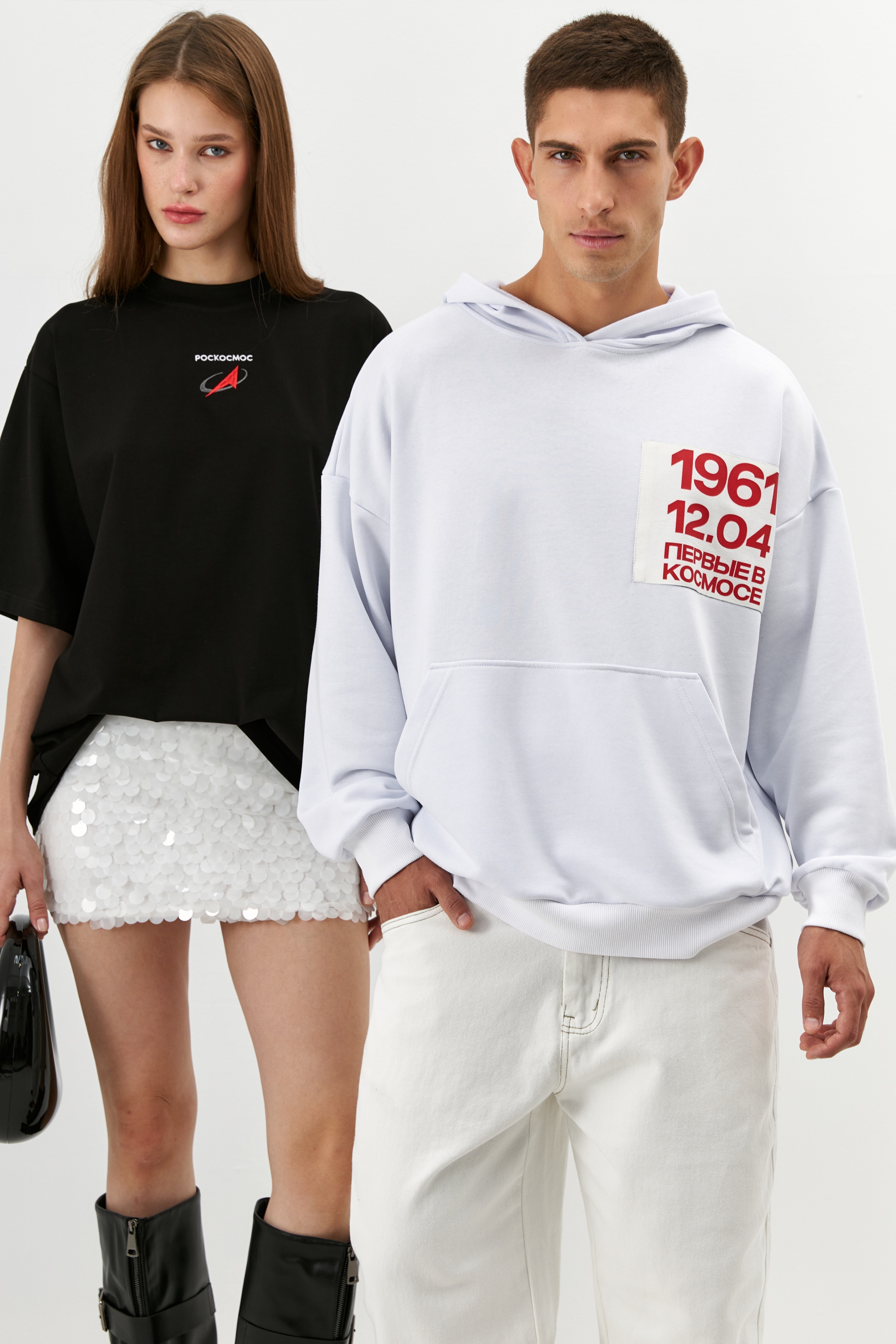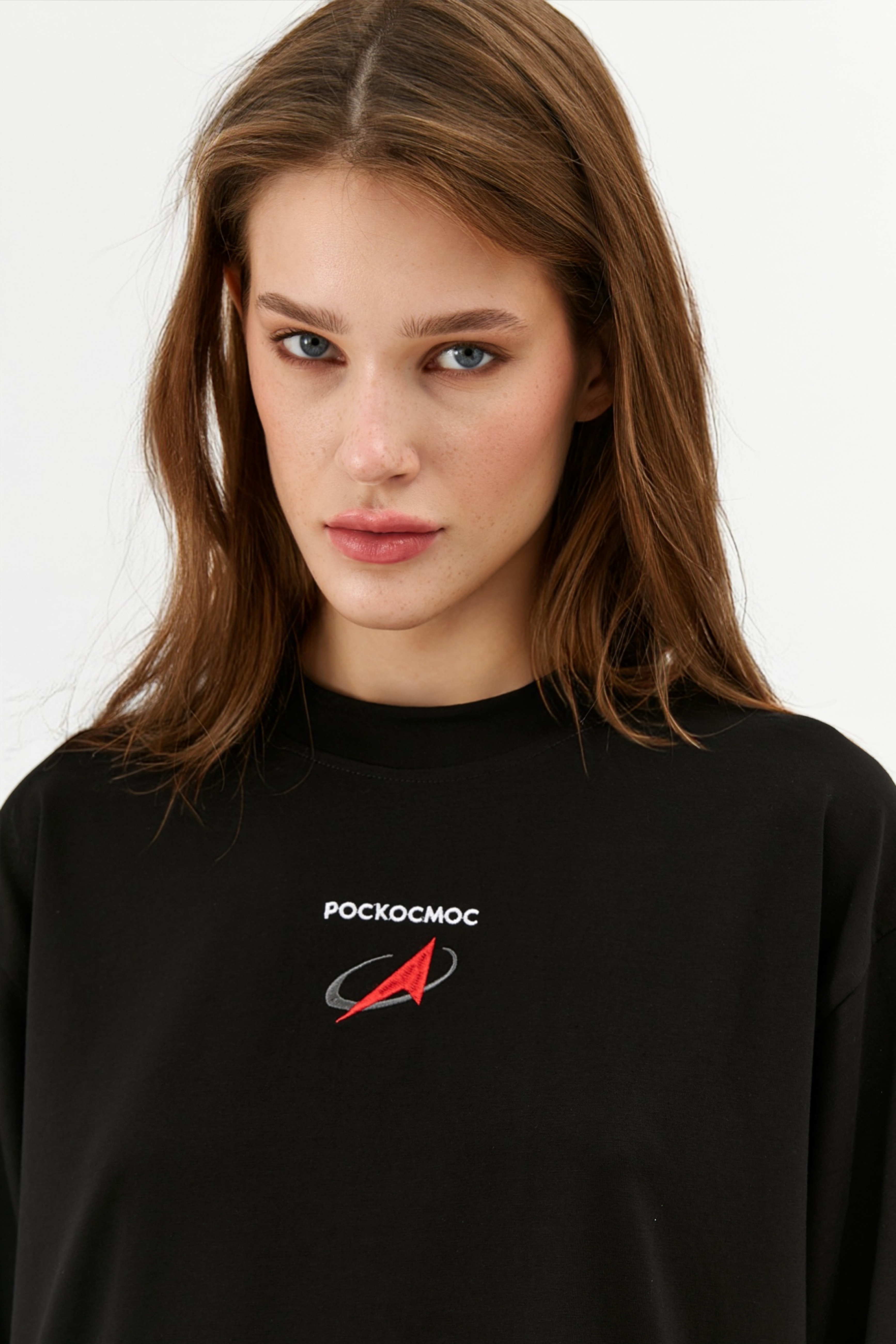 Футболка свободного кроя. Круглая горловина. Опущенная линия плеч. Спереди - фирменная вышивка РОСКОСМОС. Футболка выполнена из эластичного органического хлопка. Космос … Это слово завораживает, ведь каждый из нас мечтал прикоснуться к звёздам.