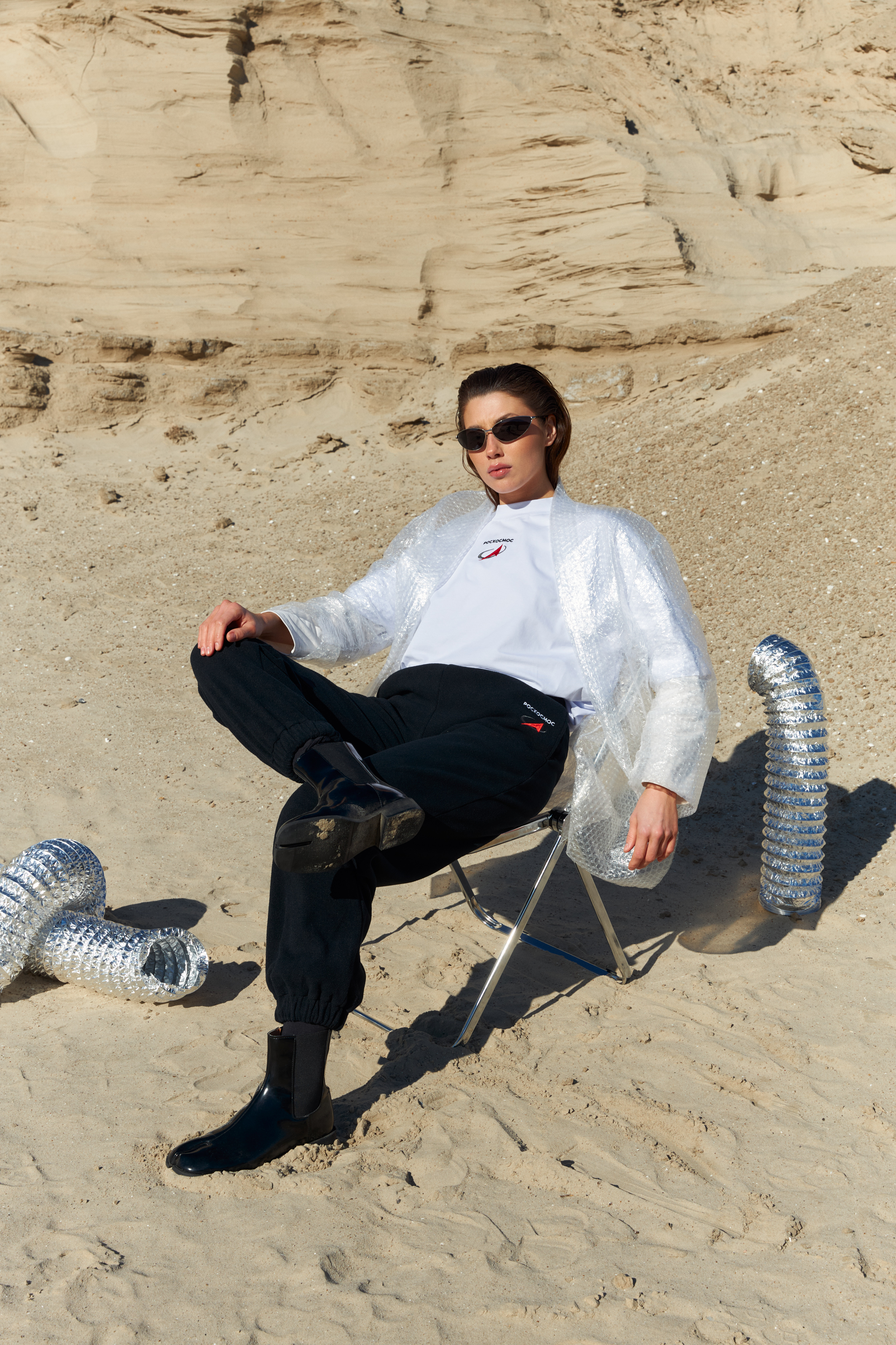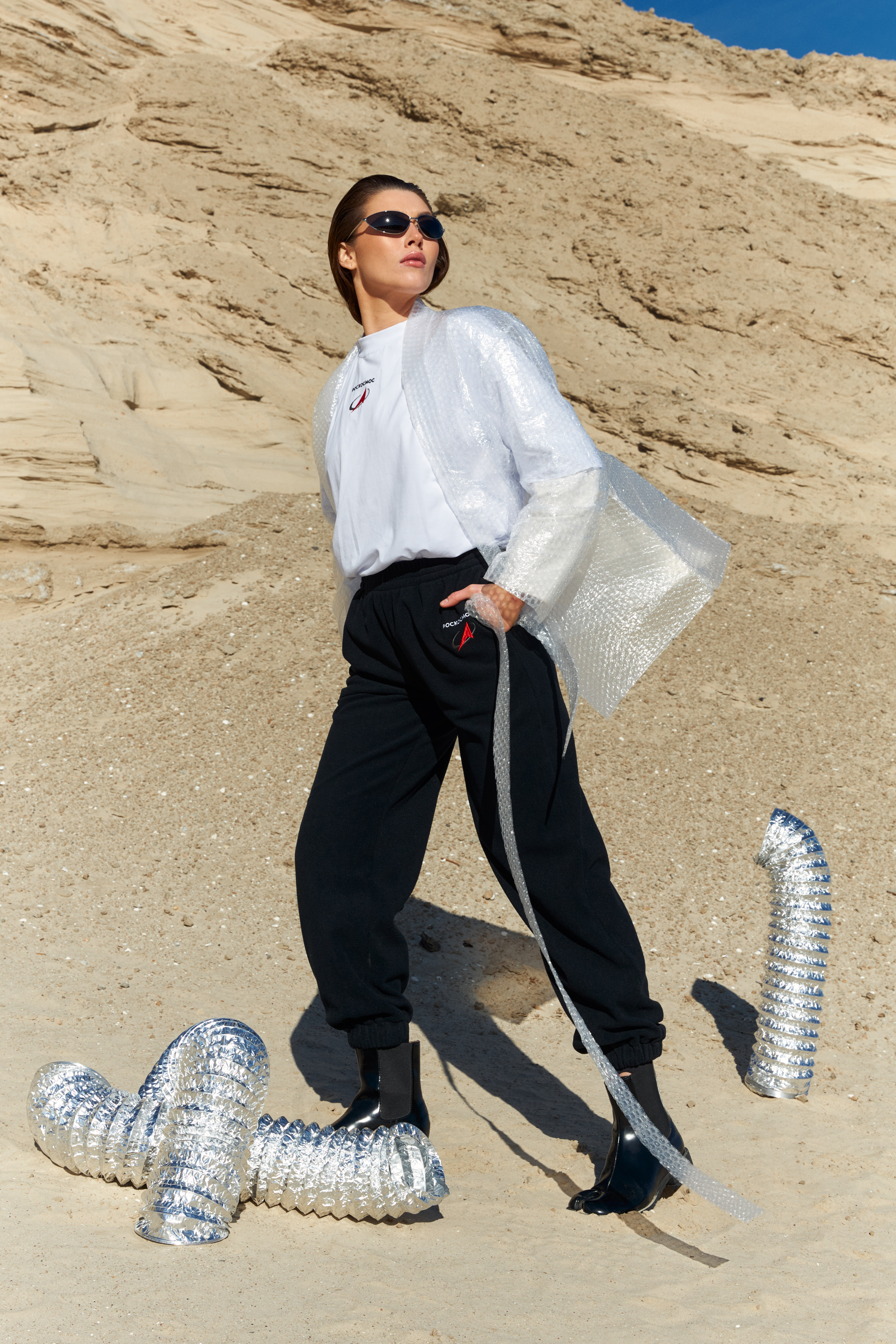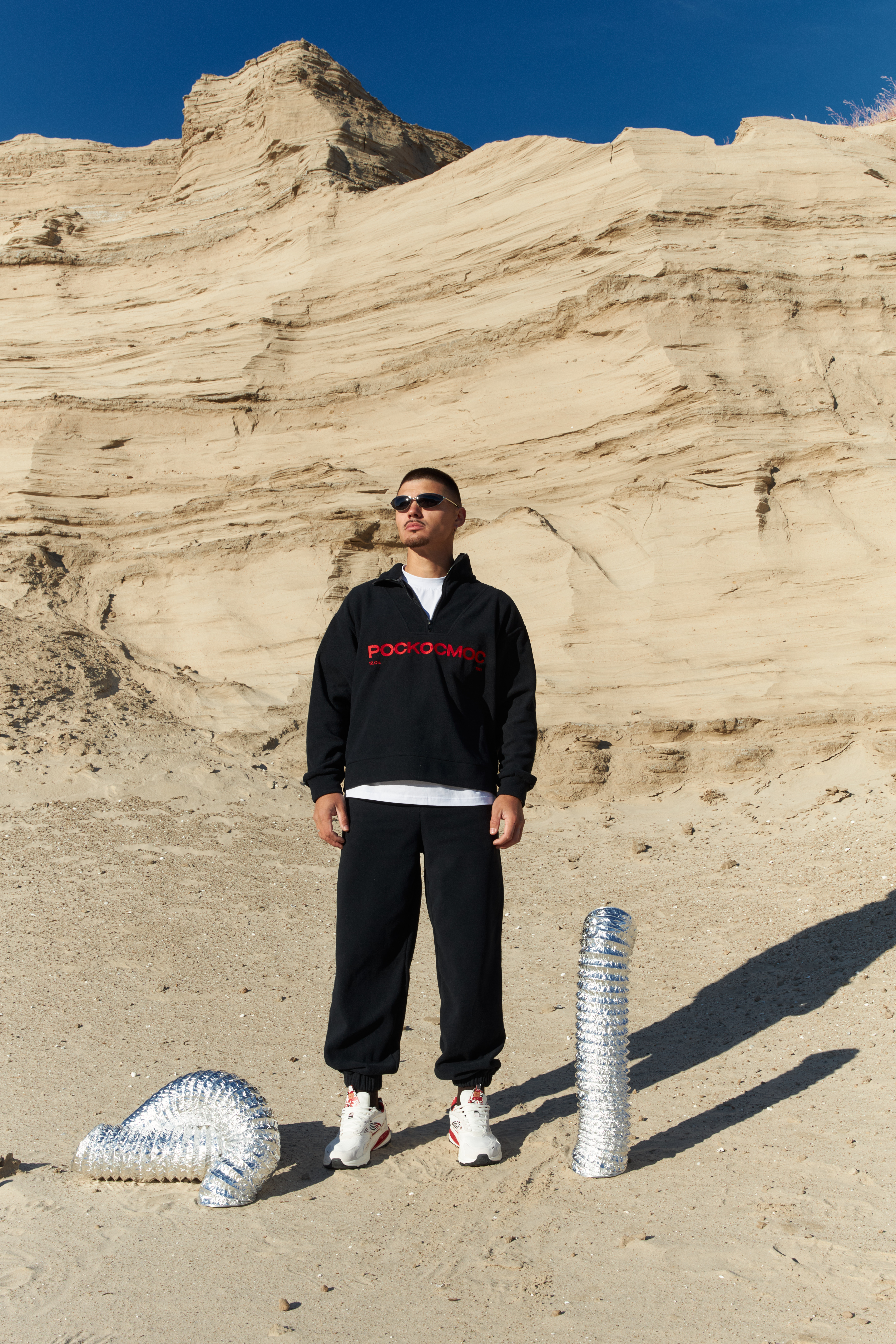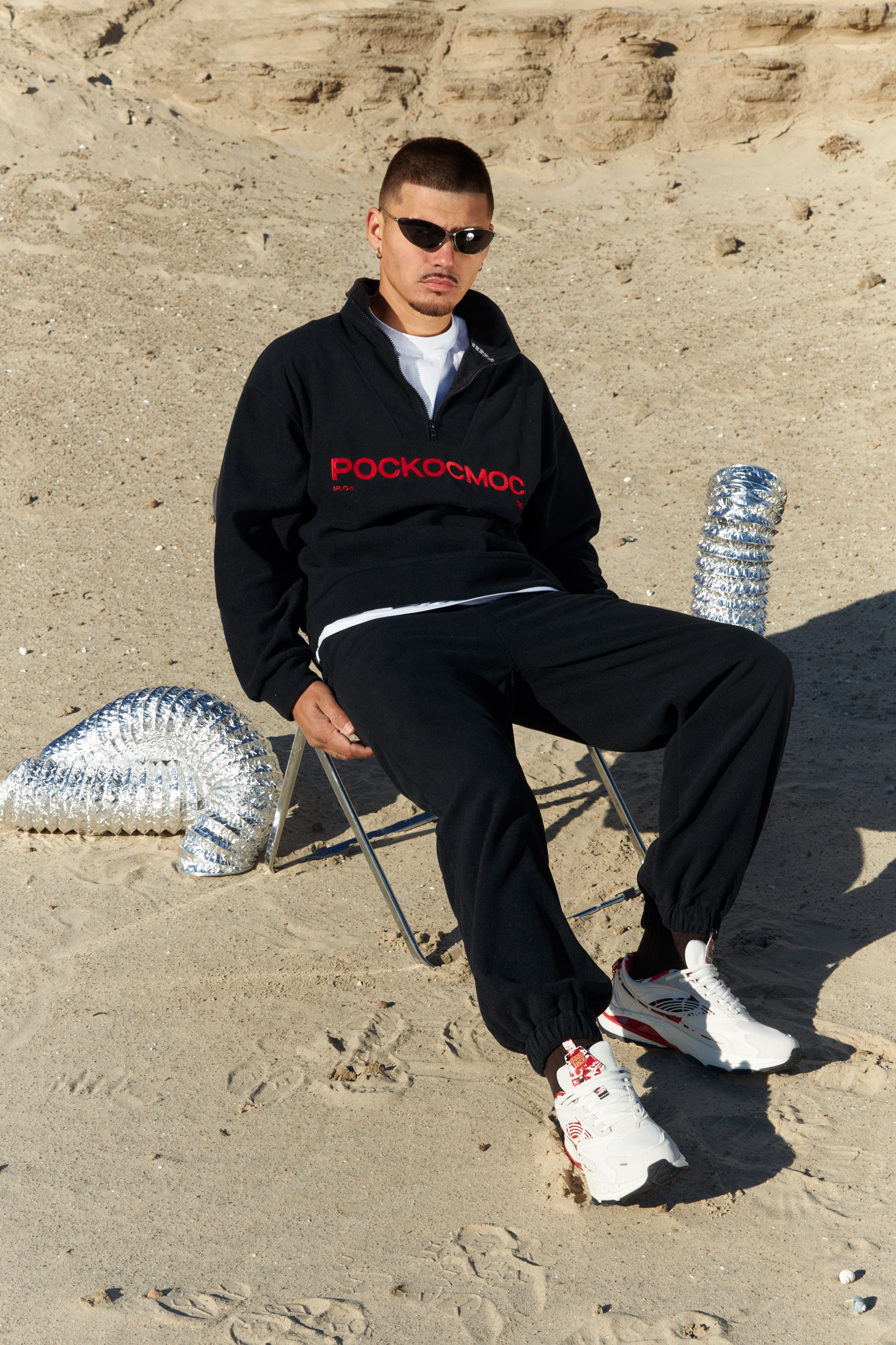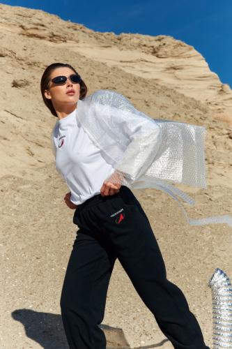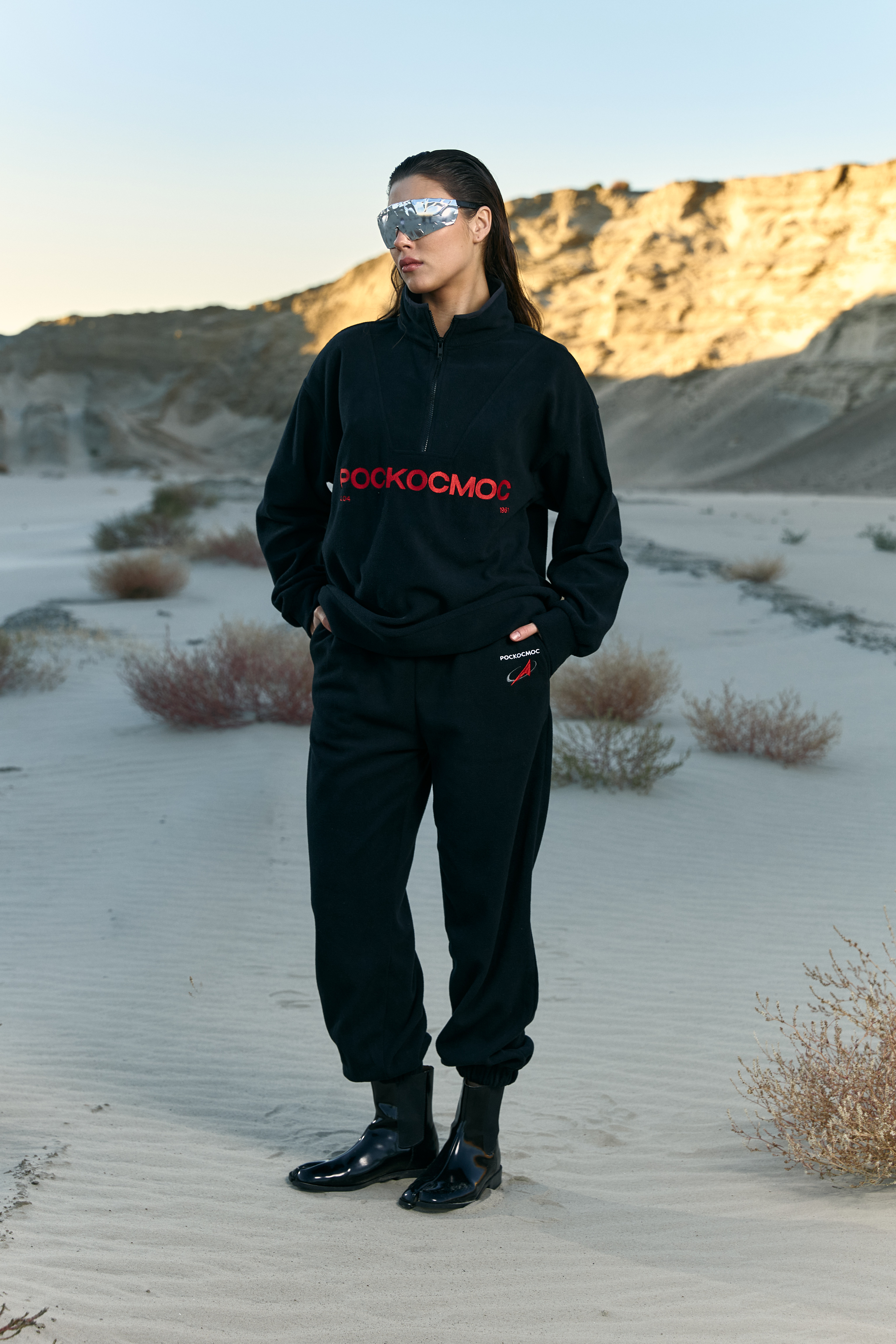 Джоггеры свободного кроя из плотной флисовой ткани. Эластичная кулиска с широким шнурком на талии. Два втачных кармана. Эластичные присборенные манжеты на штанинах. Сзади - фирменная нашивка DNK, минималистичная вышивка Роскосмос спереди у кармана . Джоггеры выполнены из плотной флисовой ткани, которая обладает хорошей эластичностью, высокой воздухопроницаемостью и отличной способностью впитывать влагу.