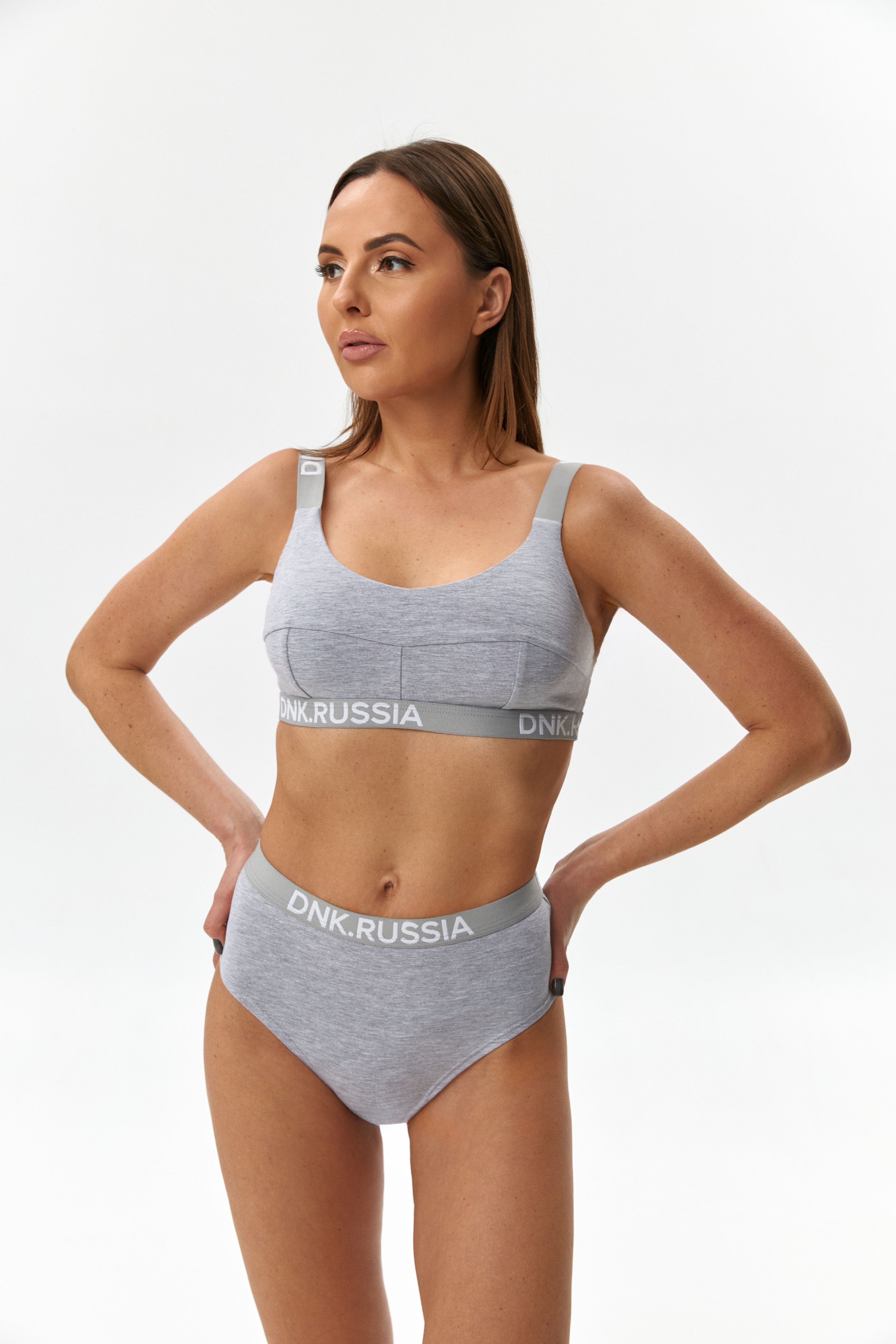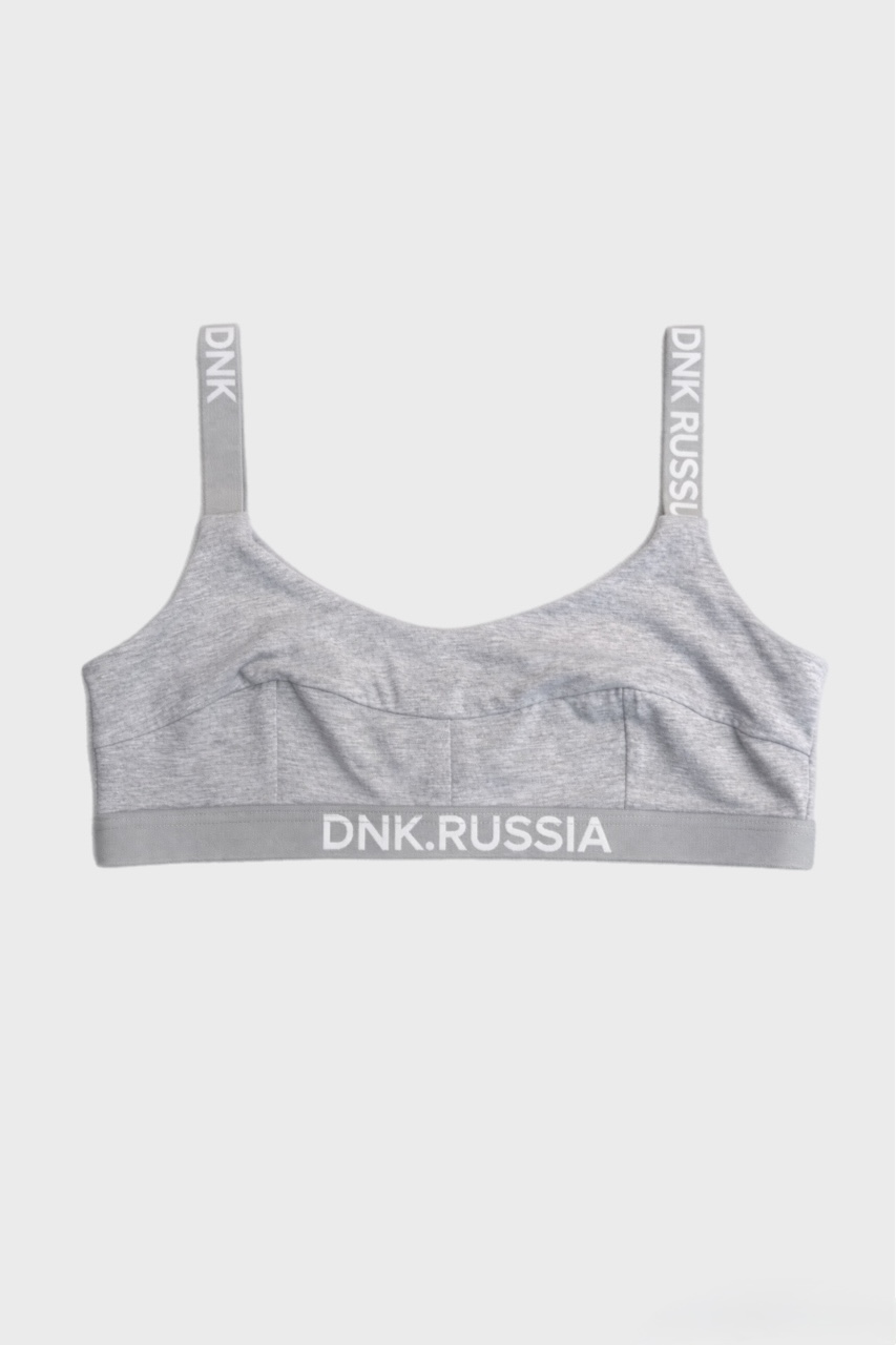 Топ короткий, базового кроя, с вытачками. Эластичные брендированные бретели. Низ топа оформлен широкой брендированной резинкой. Сзади фирменная нашивка DNK. Топ выполнен из дышащего органического хлопка. Эластичная ткань не теряет формы при регулярном использовании.