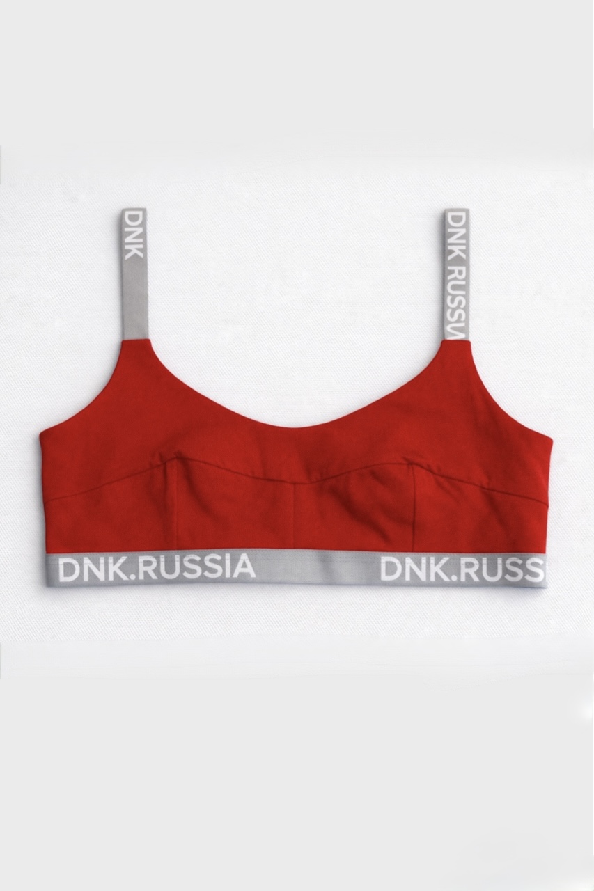 Топ короткий, базового кроя, с вытачками. Эластичные брендированные бретели. Низ топа оформлен широкой брендированной резинкой. Сзади фирменная нашивка DNK. Топ выполнен из дышащего органического хлопка. Эластичная ткань не теряет формы при регулярном использовании.