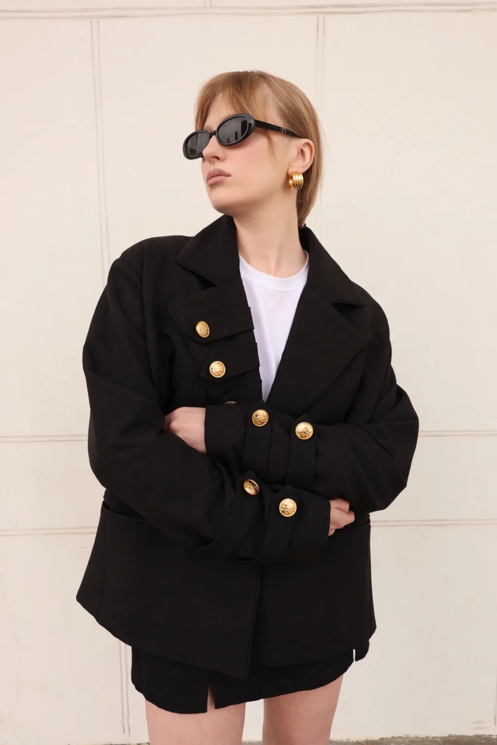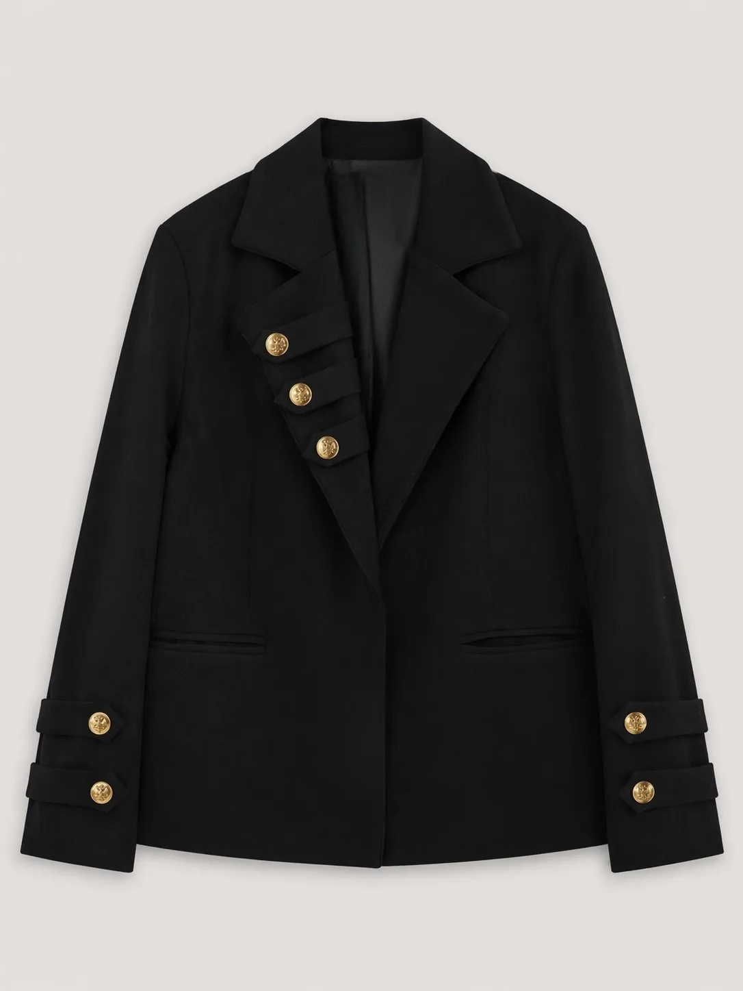 Особенности модели: — Гусарские акценты — декоративные элементы с отсылкой к военной эстетике и исторической форме — Золотые пуговицы с гербом — выразительный акцент, добавляющий статус и характер — Акцентная линия борта — нестандартное расположение деталей создает архитектурный силуэт — Подкладка из эко-шёлка — комфорт в каждом движении и приятные тактильные ощущения