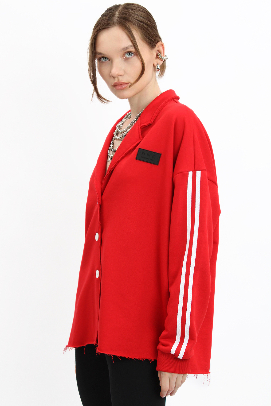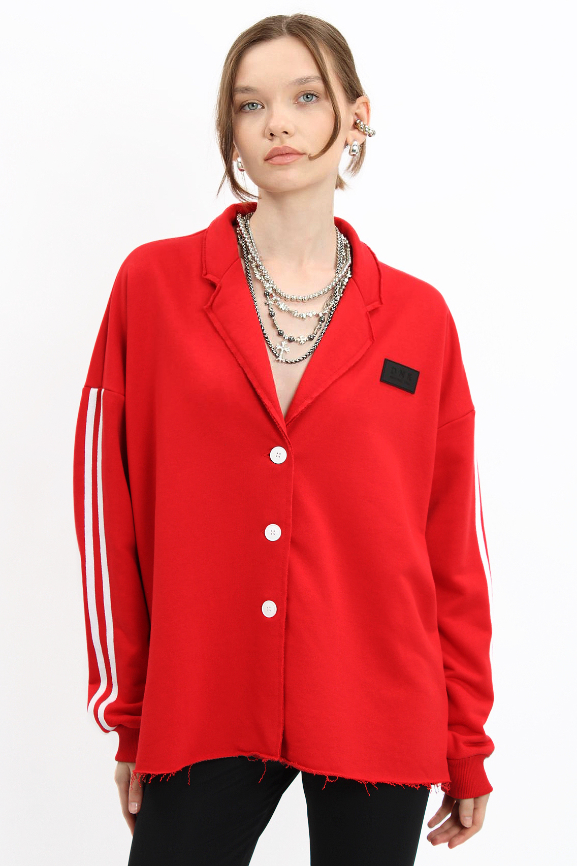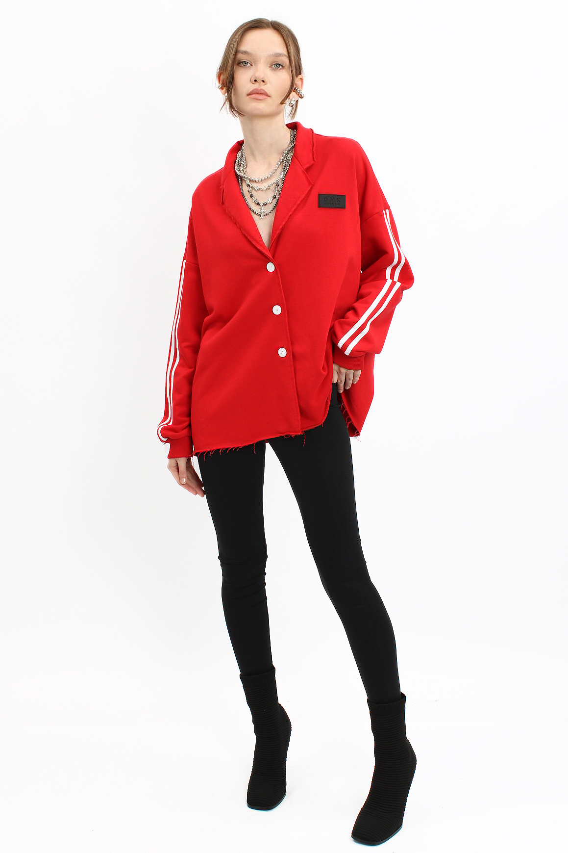 Пиджак свободного кроя. Отложной воротник с лацканами. Воротник с эффектом необработанного края. Опущенная линия плеч. Рукава с эластичными манжетами в рубчик. Рукава оформлены двойными лампасами. Пиджак застегивается на пуговицы. Слева на груди прорезиненная нашивка DNK. Сзади - фирменная нашивка DNK. Пиджак выполнен из футера 3-х нитки, который удерживает тепло, не перегревая тело.