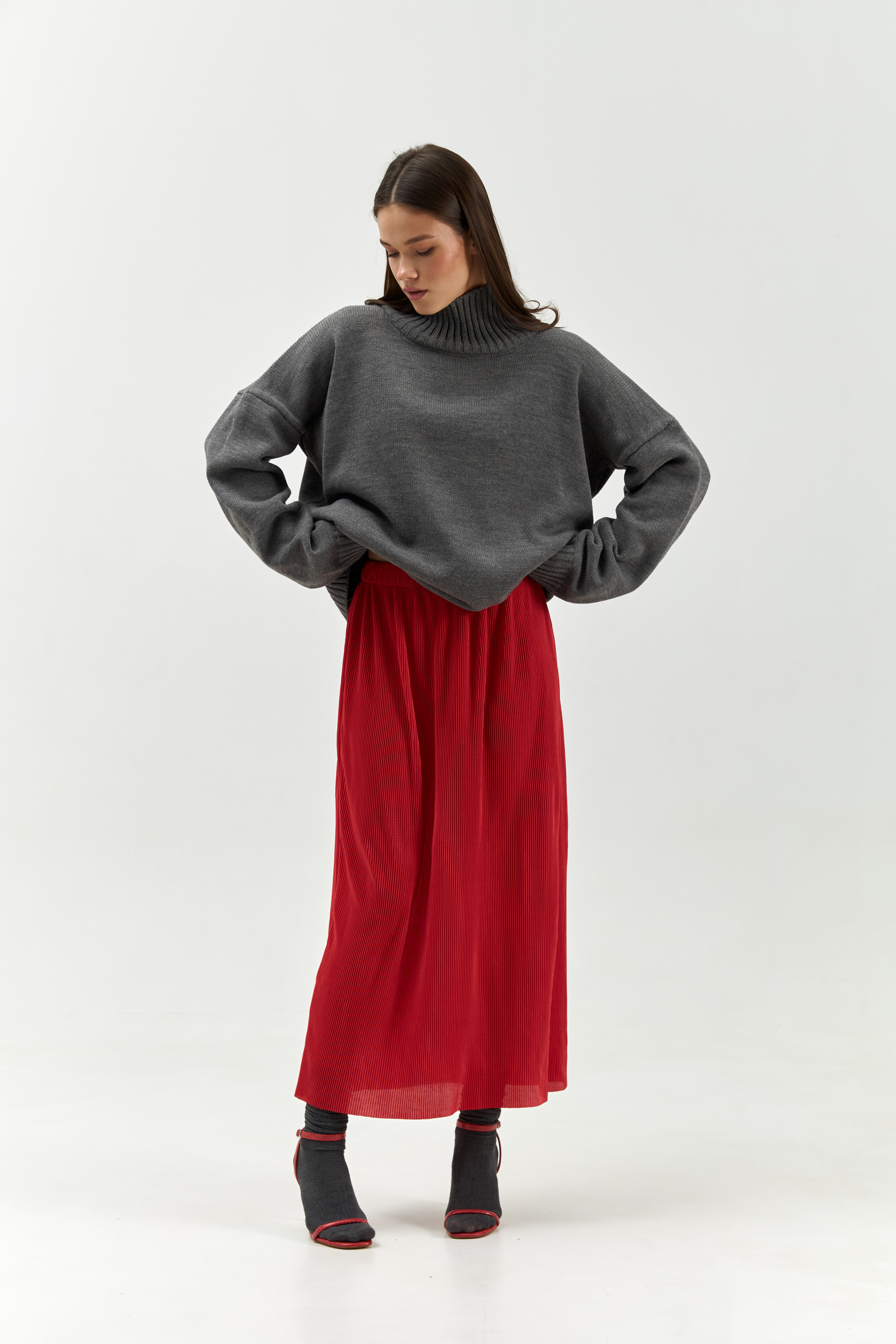 На поясе — фирменная нашивка DNK как знак идентичности бренда. Юбка легко сочетается с трикотажем, жакетами и базовыми футболками, оставаясь универсальным элементом гардероба.