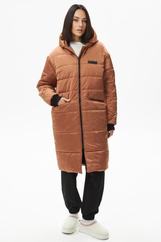 Пуховик прямого базового кроя, удлиненный. Глубокий капюшон. Брендированная застежка - молния. Два втачных кармана. На груди фирменная нашивка DNK. Пуховик выполнен из ветрозащитной и влагоотталкивающей курточной ткани. Утеплитель - умный экоаналог пуха. Температурный режим -35C.