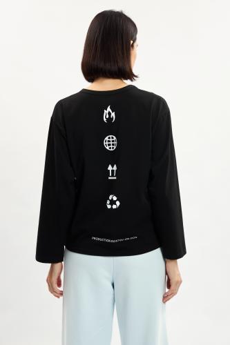 Лонгслив прямого кроя. Круглая горловина. Длинные прямые рукава. На спине - авторский принт DNK Russia "Символы". Стрелки указывают на развитие, пламя символизирует внутреннюю силу, глобус — открытость миру. Сбоку - фирменная нашивка DNK. Лонгслив выполнен из органического хлопка. Ткань кулирная гладь.